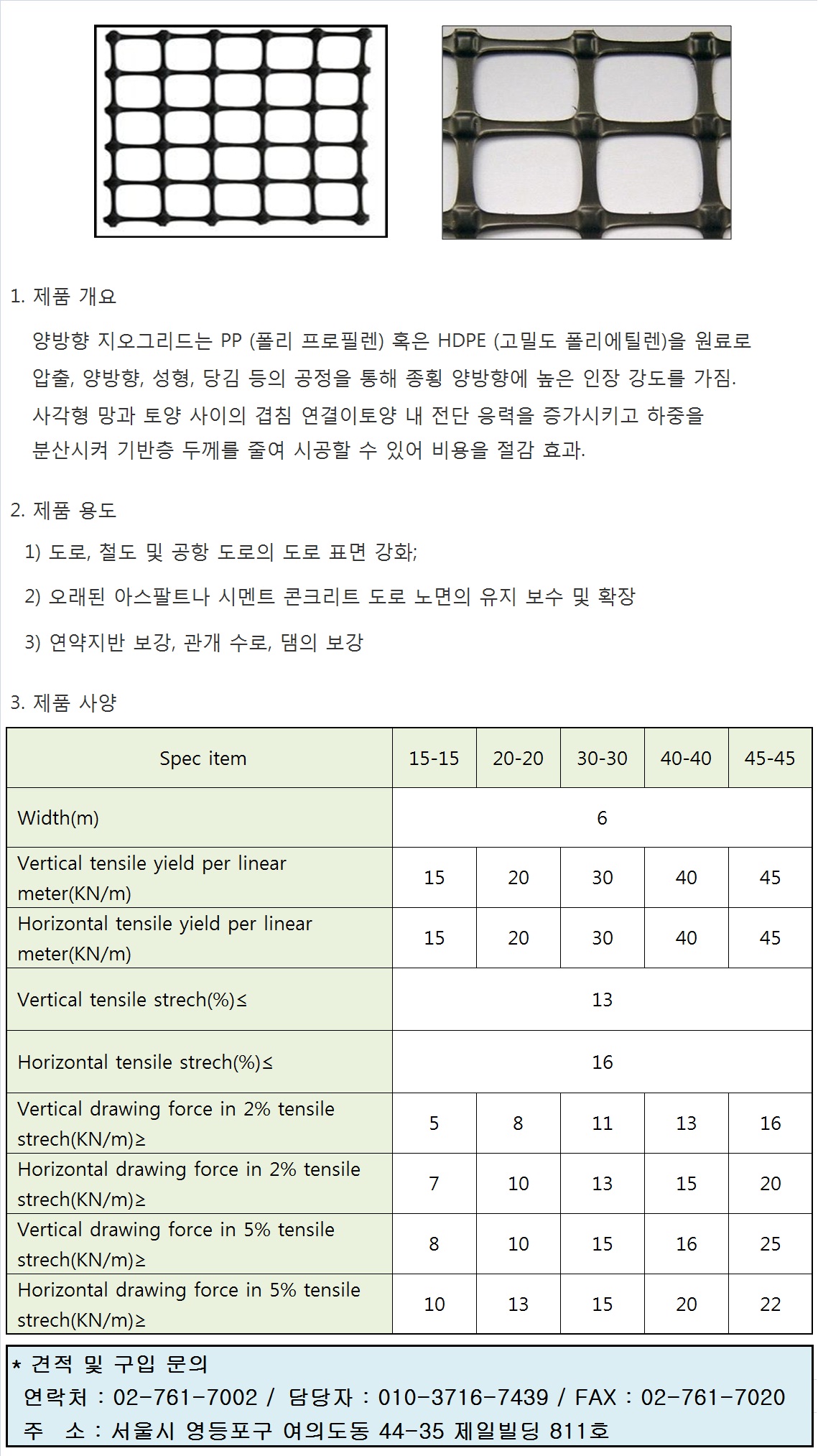 :: 양방향 지오그리드 (HDPE/PP Biaxial Geogrid ) ::